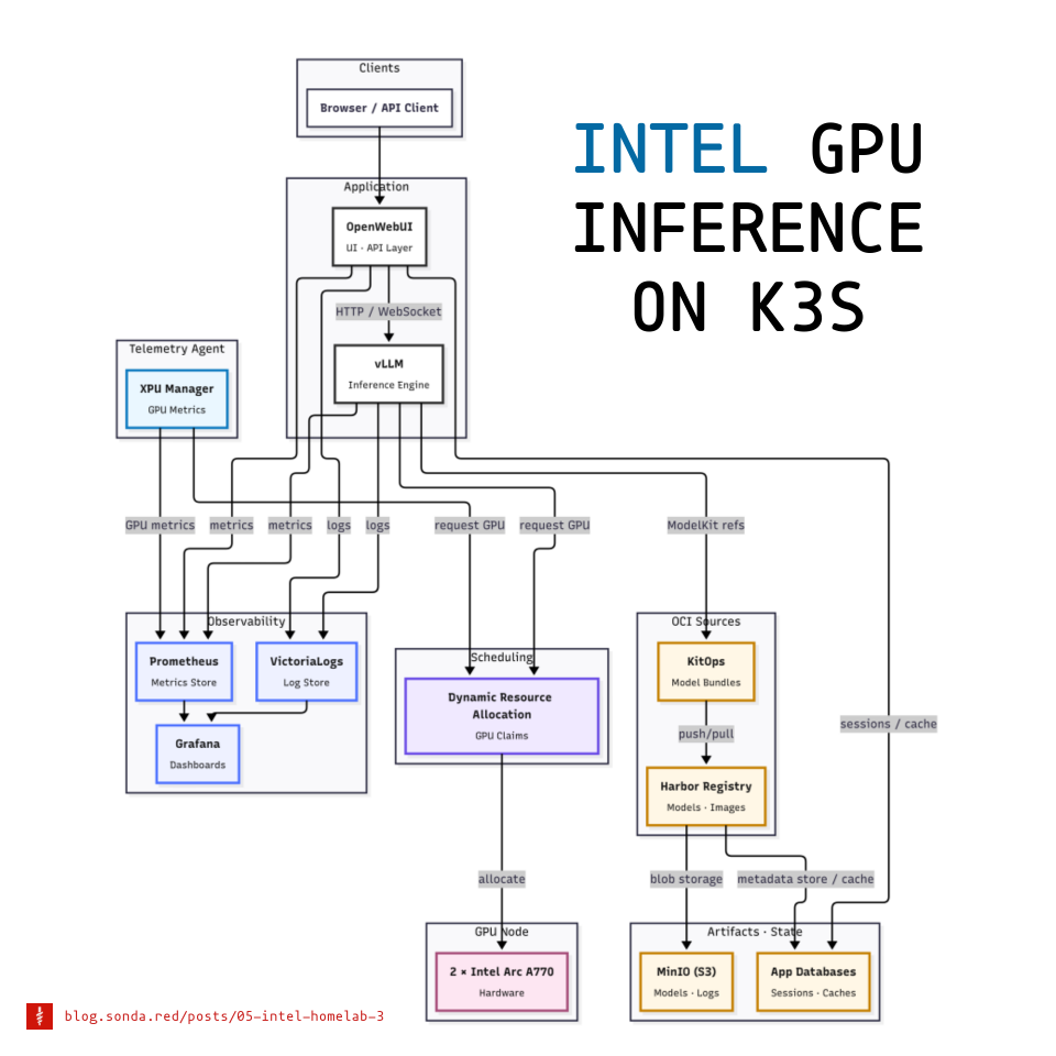 Disclaimer: This is not production guidance and it is not sponsored. It documents what actually ran in my homelab with Arc GPUs and k3s. Please double-check before you roll it into your own setup.